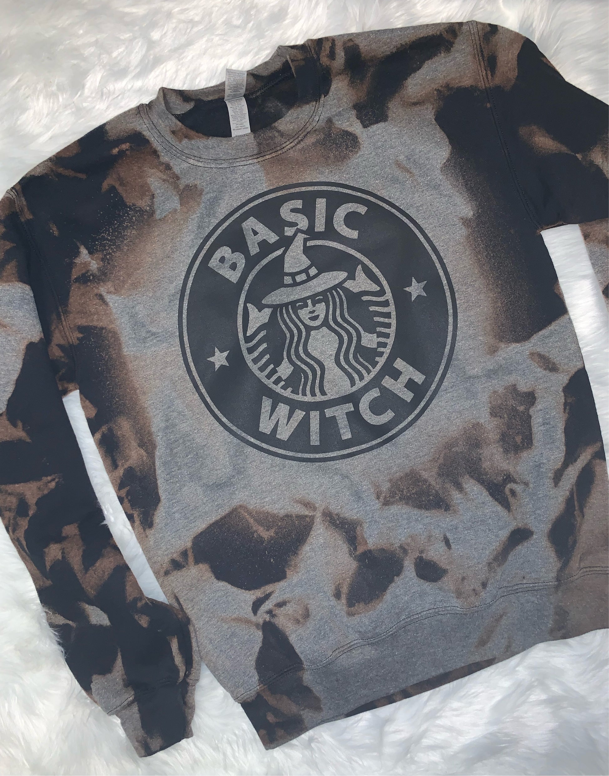 Bleached Gildan crew neck sweatshirt. 50% polyester & 50% cotton.