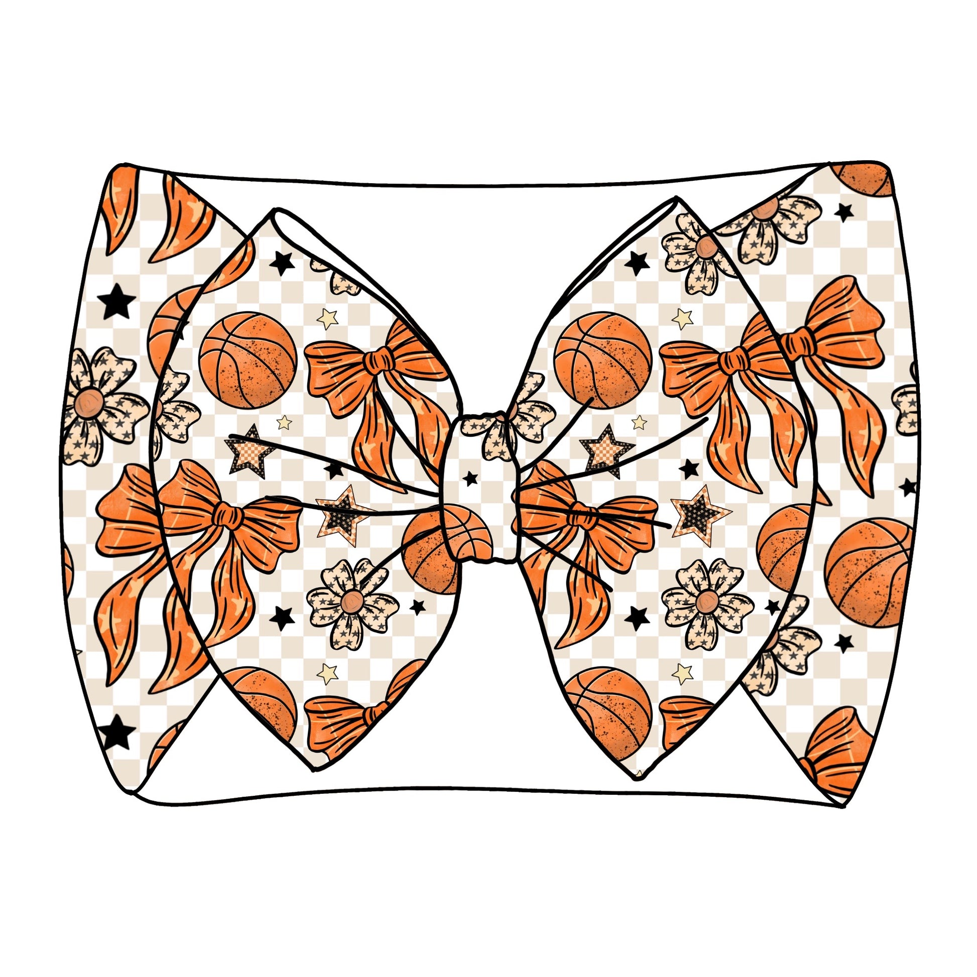 These bows are approximately 5 inches wide and on a 5 inch wide band.