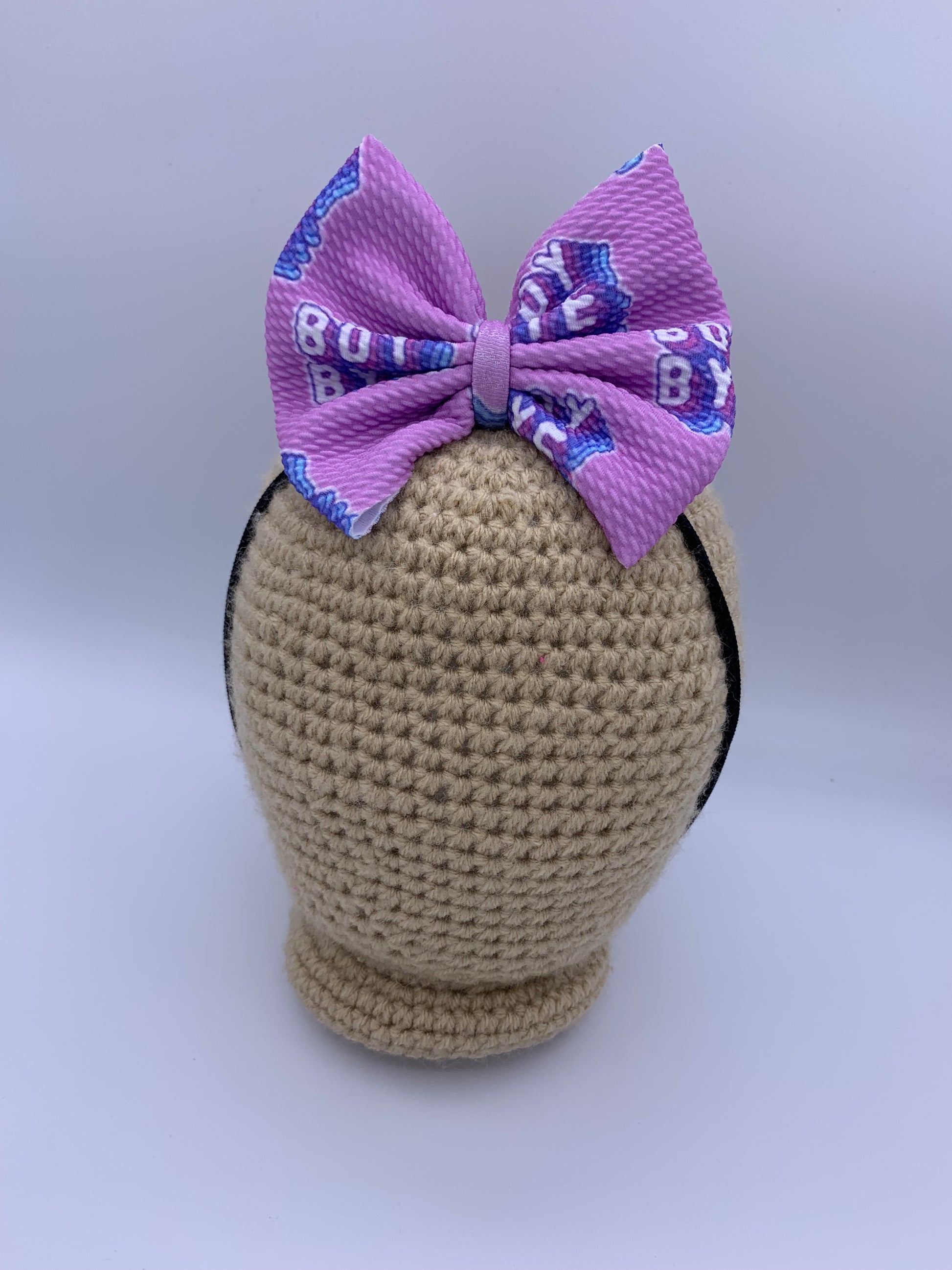 These bows are approximately 5 inches wide. You have the choice of the bow being on a 2.25 inch alligator clip or a stretchy nylon band . The nylon band is a one size fits all.