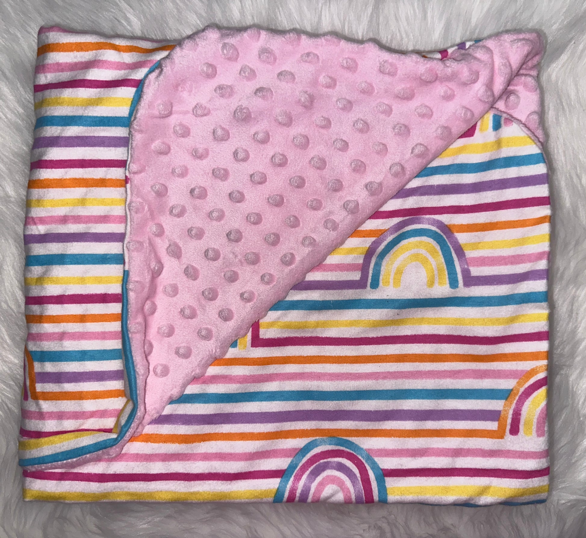 3ft X 3.5ft soft Minky and Flannel blankets. Perfect for any aged child.