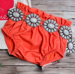 Coral ruffle hem baby bloomers offer a 95% polyester-5% spandex blend, providing a comfortable and stylish fit. The blend is designed for durability and a soft feeling against your baby's skin, allowing them to look and feel great all day.
