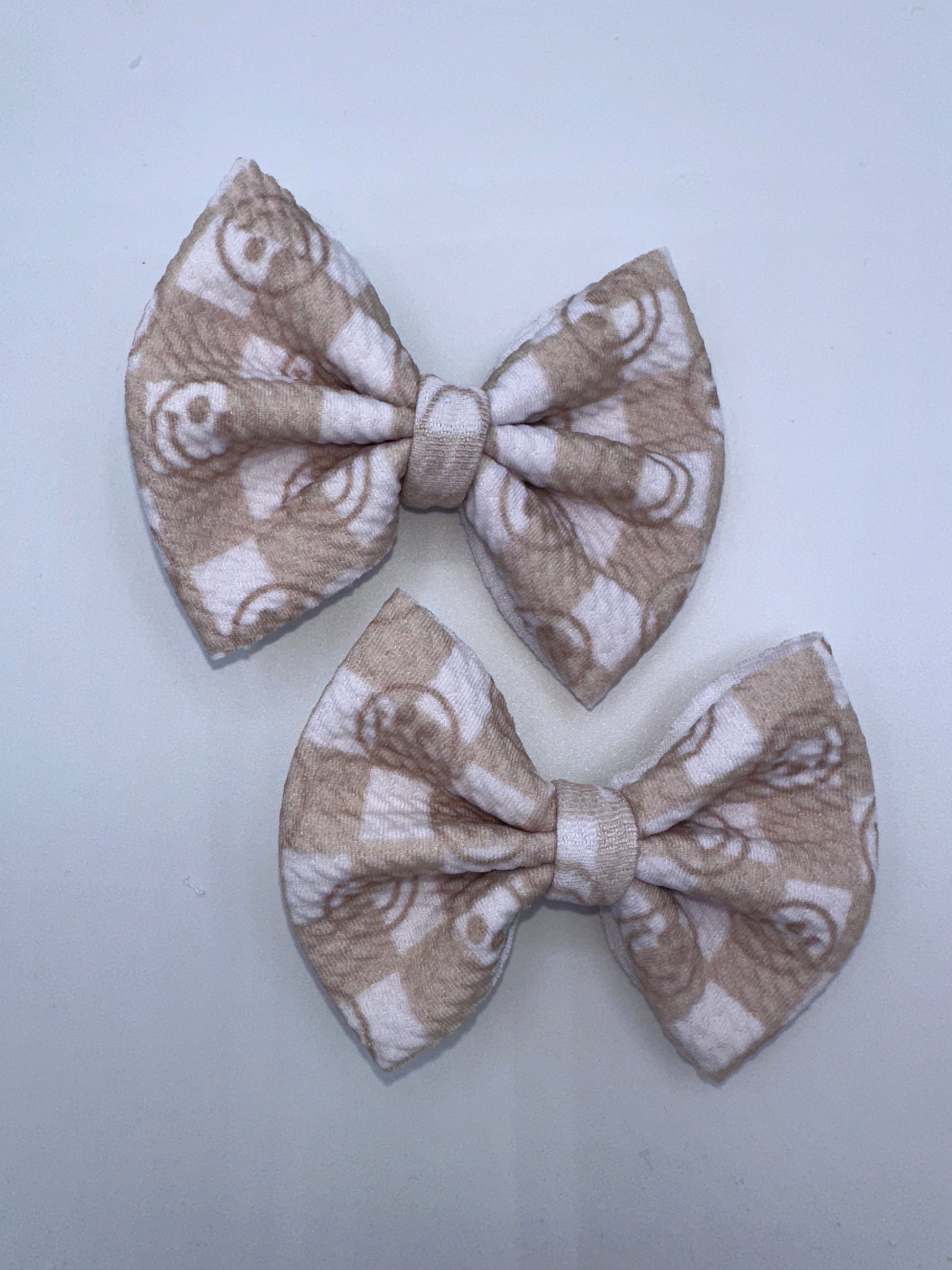 All bows may vary slightly due to the nature of being handmade. This goes for fabric, fabric pattern placement and color.