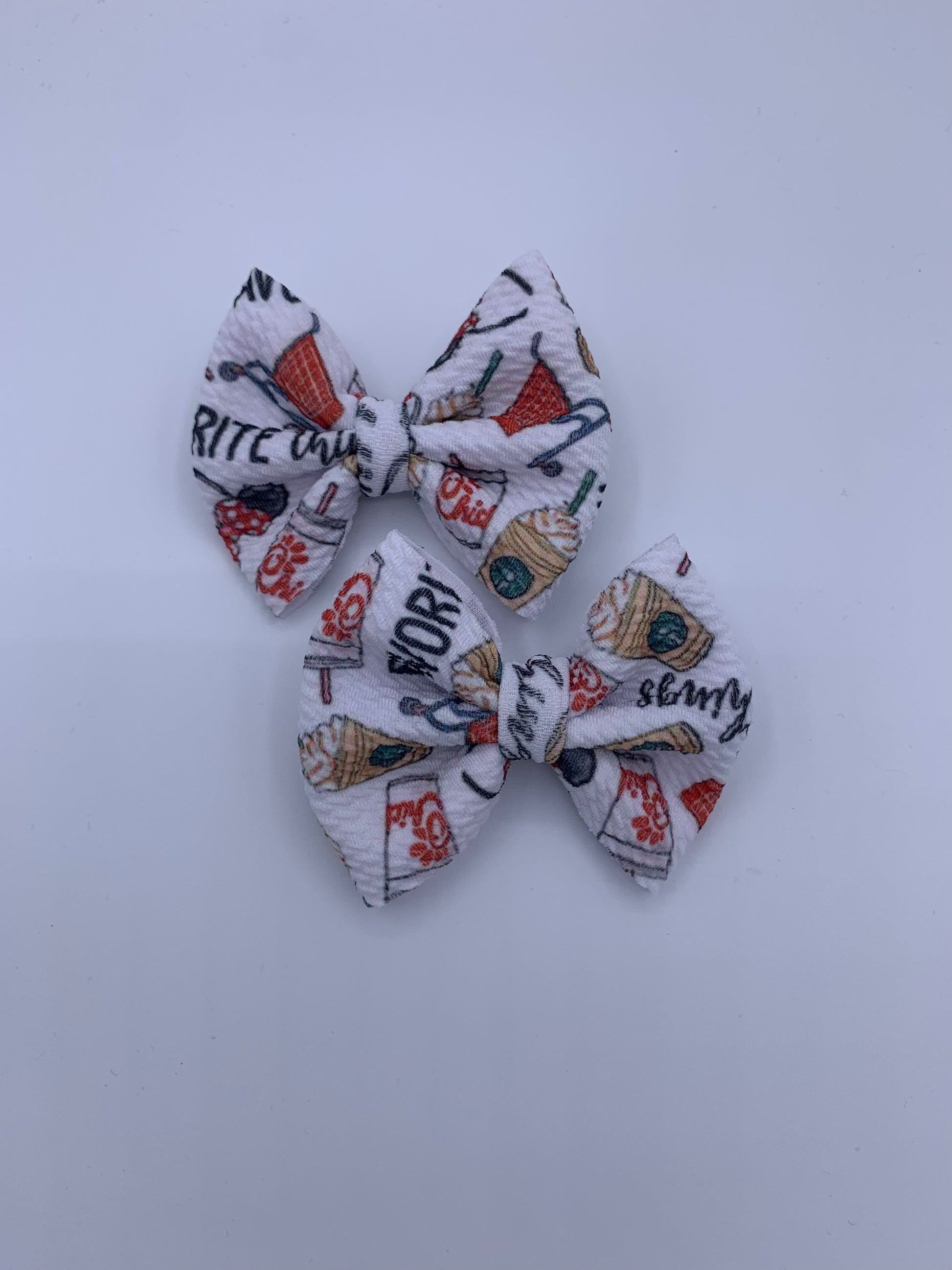 All bows may vary slightly due to the nature of being handmade. This goes for fabric, fabric pattern placement and color.
