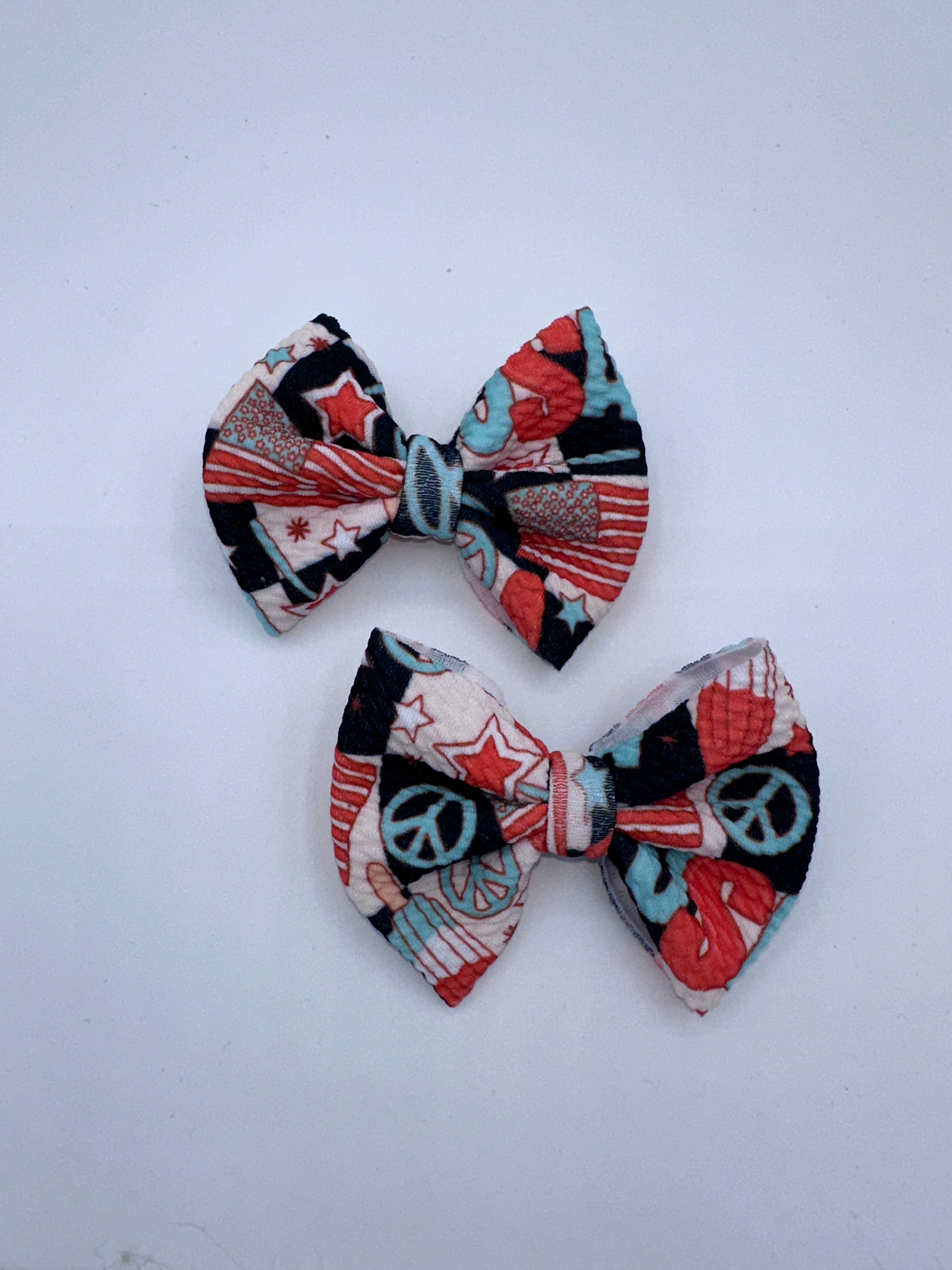 All bows may vary slightly due to the nature of being handmade. This goes for fabric, fabric pattern placement and color.