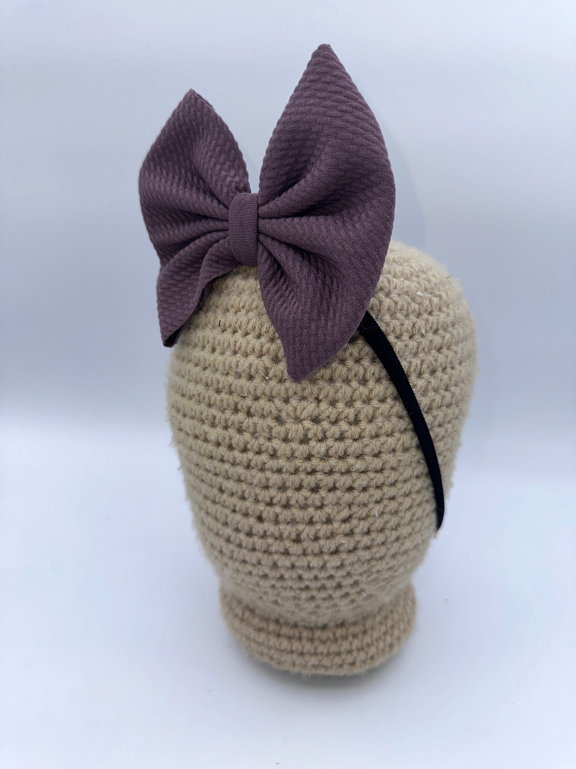 These bows are approximately 5 inches wide. You have the choice of the bow being on a 2.25 inch alligator clip or a stretchy nylon band . The nylon band is a one size fits all.