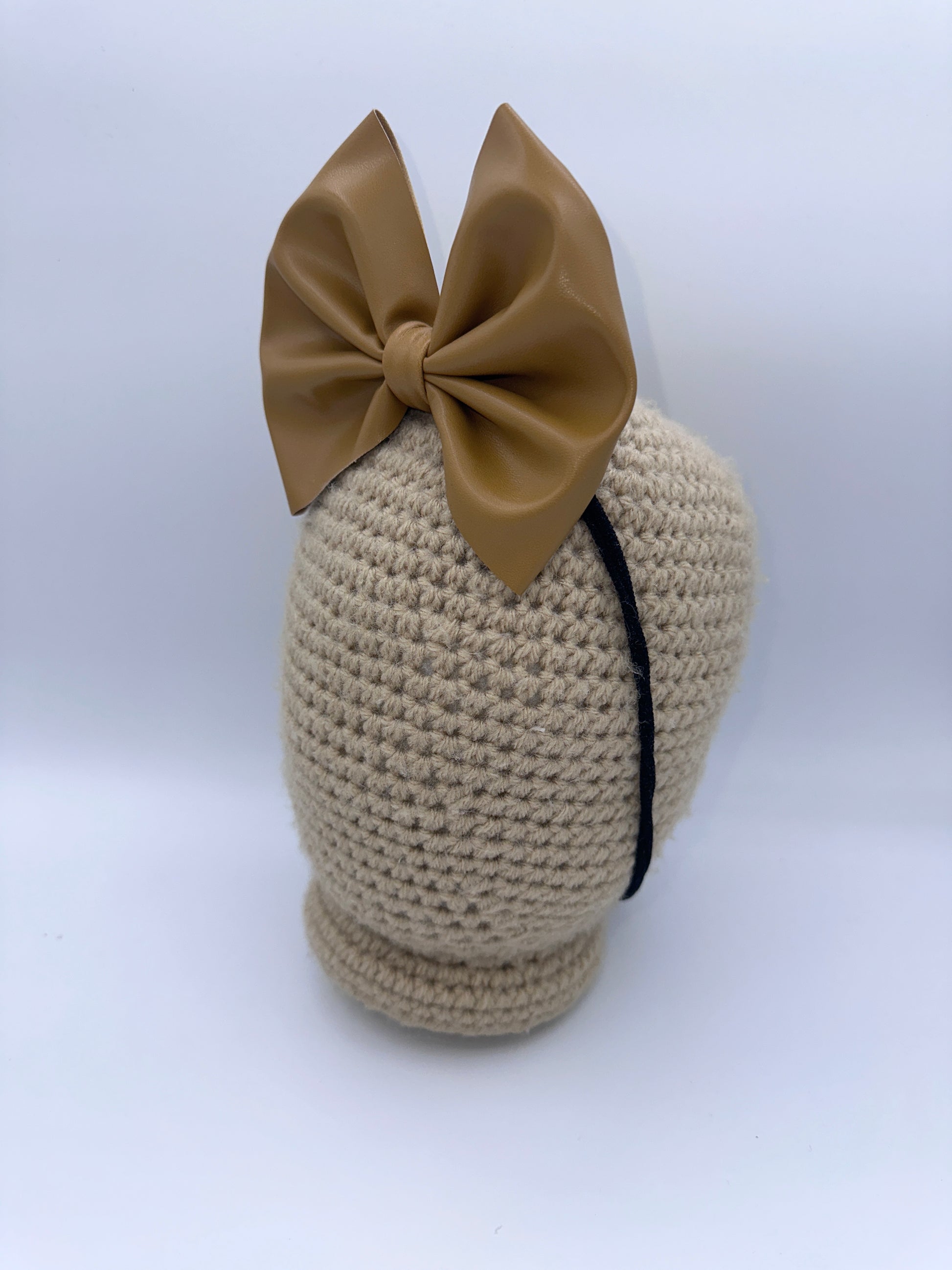 These bows are approximately 5 inches wide. You have the choice of the bow being on a 2.25 inch alligator clip or a stretchy nylon band . The nylon band is a one size fits all.