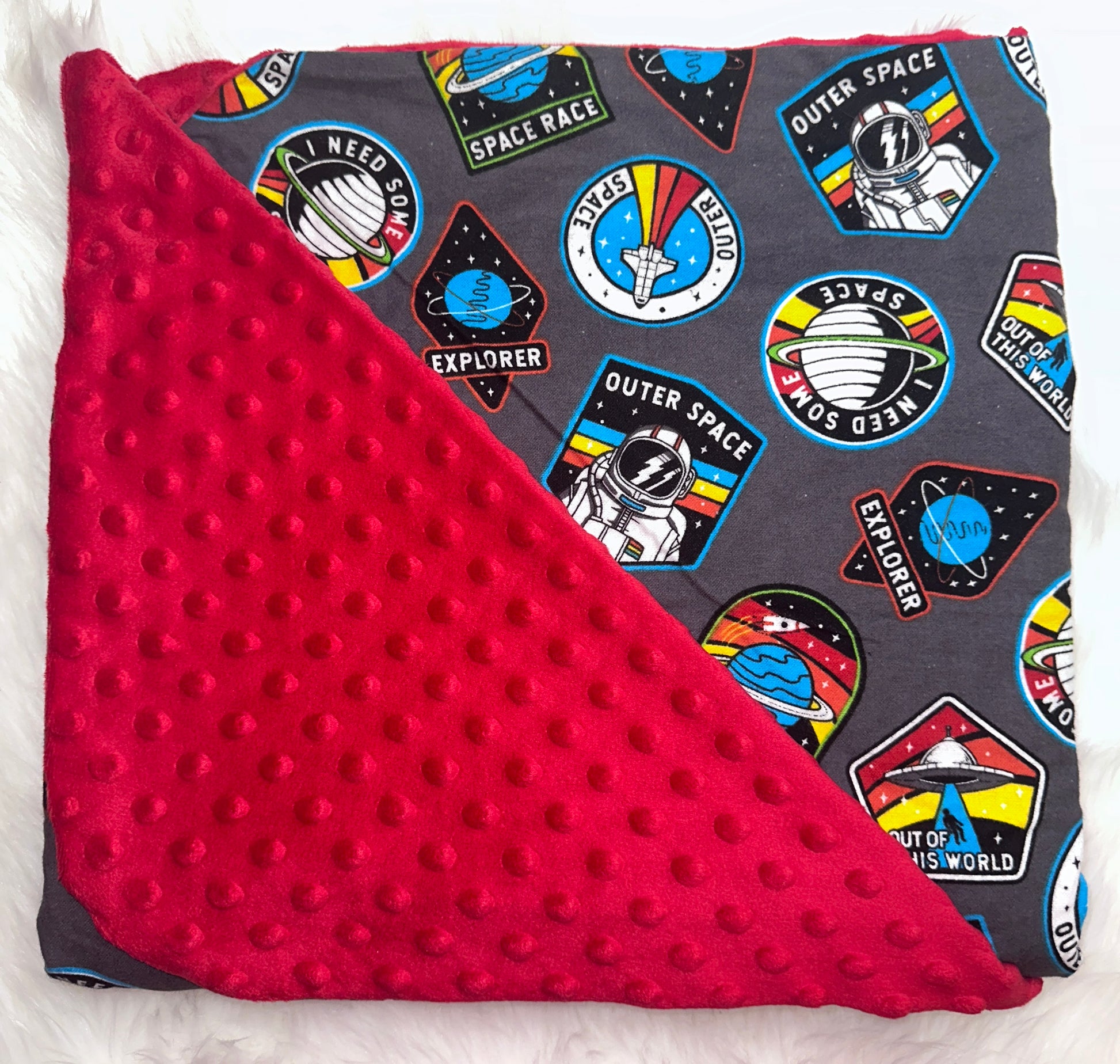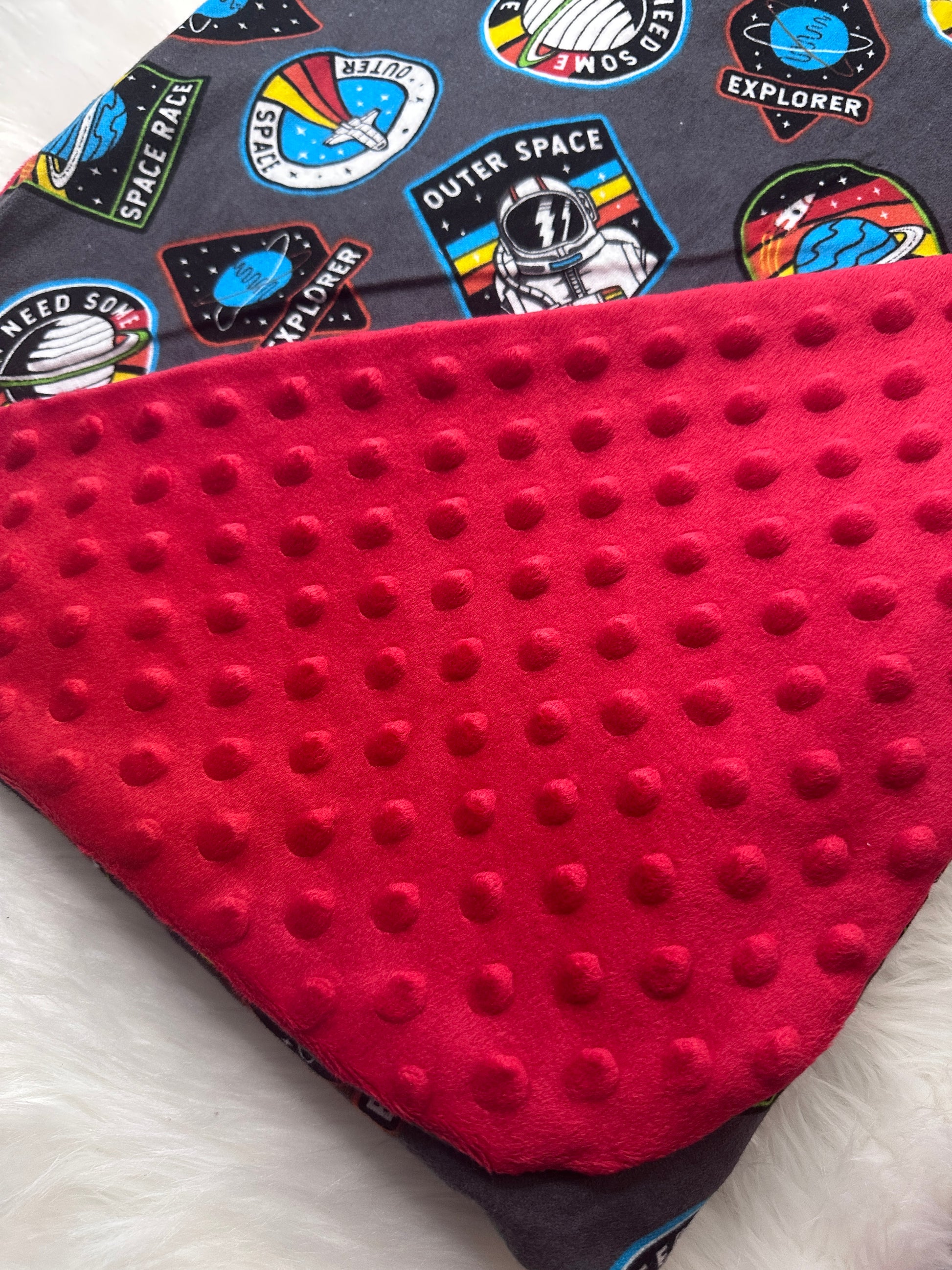3ft X 3.5ft soft Minky and Flannel blankets. Perfect for any aged child.