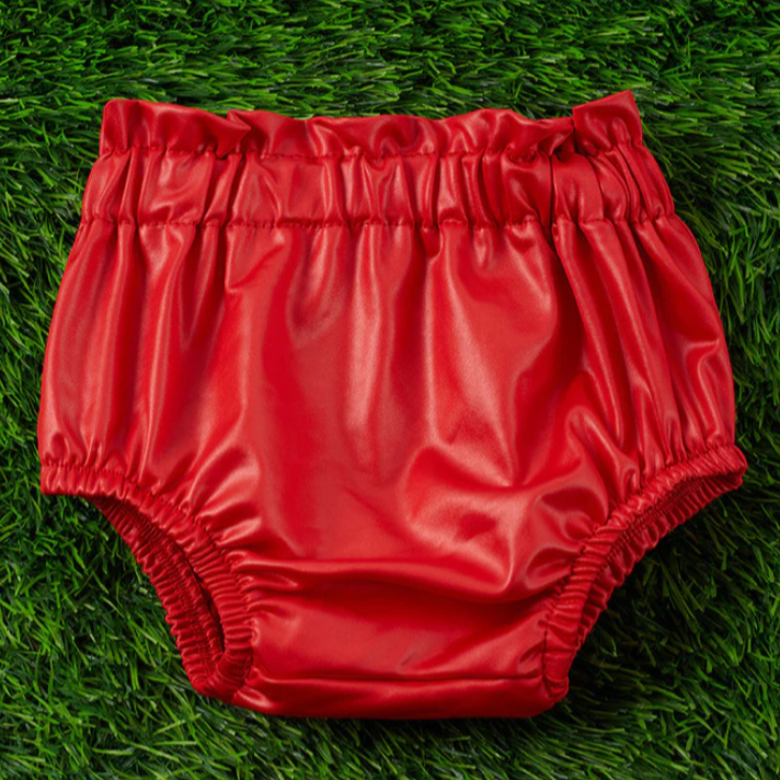 These Red faux leather baby bloomers offer a 95%polyester-5%spandex blend, providing a comfortable and stylish fit. The blend is designed for durability and a soft feeling against your baby's skin, allowing them to look and feel great all day.
