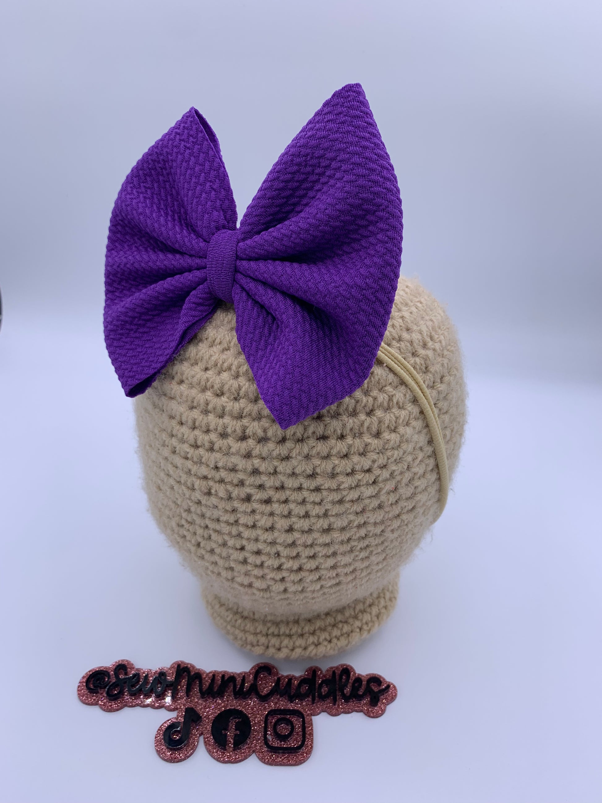 These bows are approximately 5 inches wide. You have the choice of the bow being on a 2.25 inch alligator clip or a stretchy nylon band . The nylon band is a one size fits all.