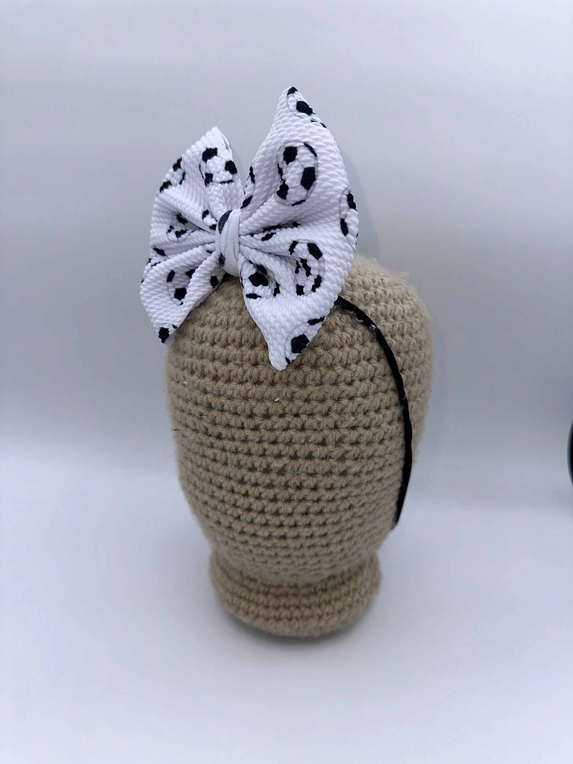 These bows are approximately 5 inches wide. You have the choice of the bow being on a 2.25 inch alligator clip or a stretchy nylon band . The nylon band is a one size fits all.