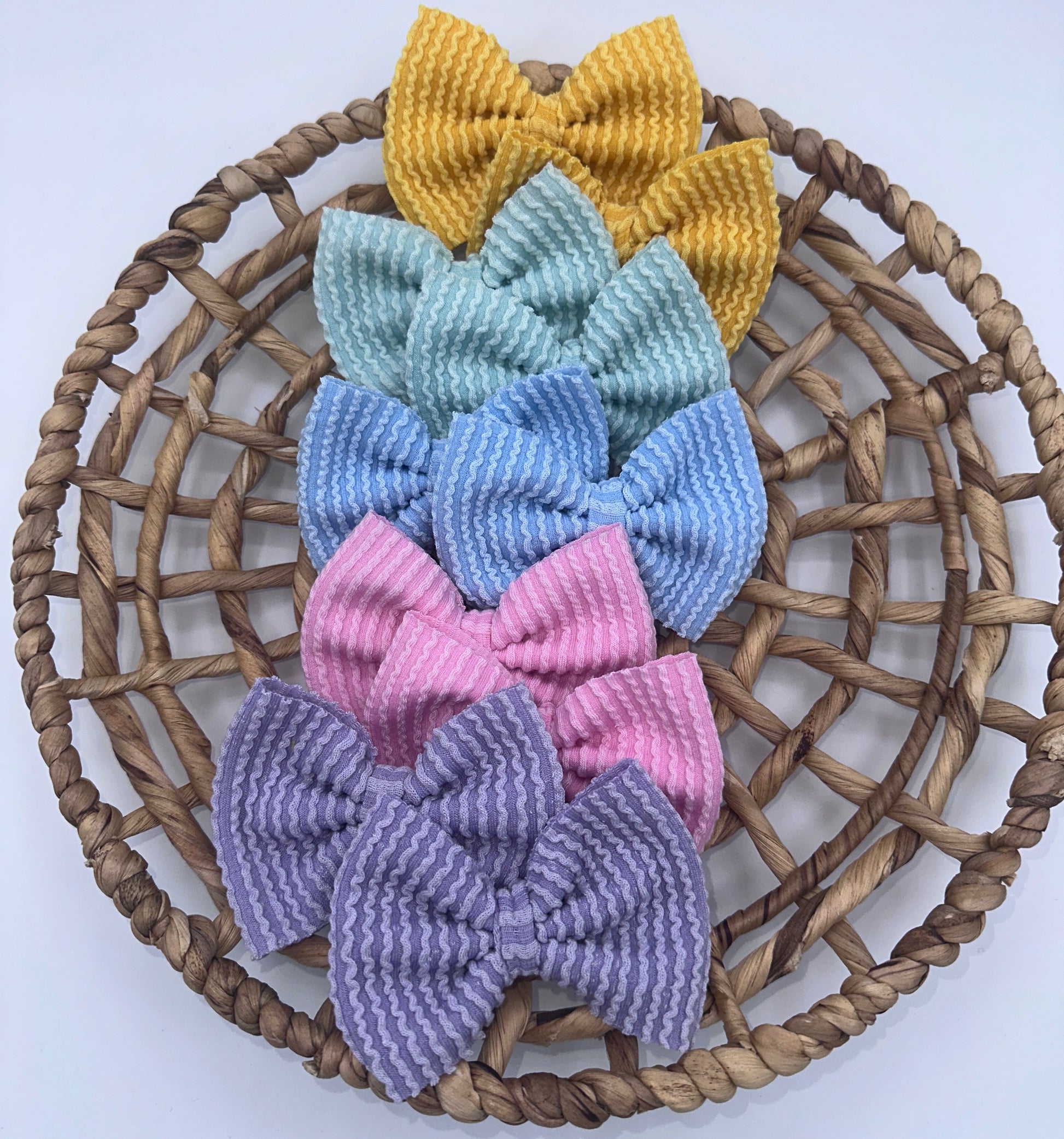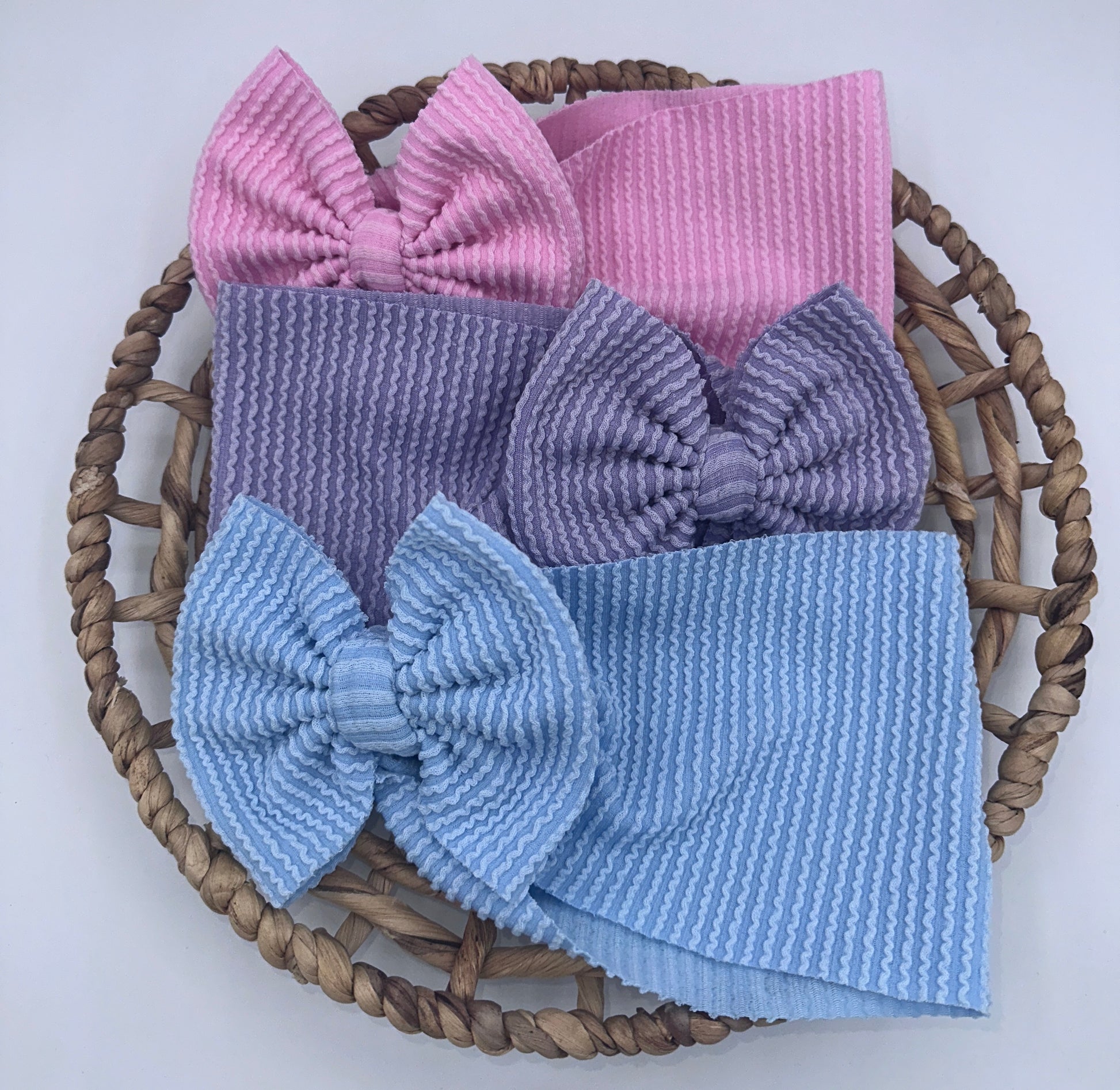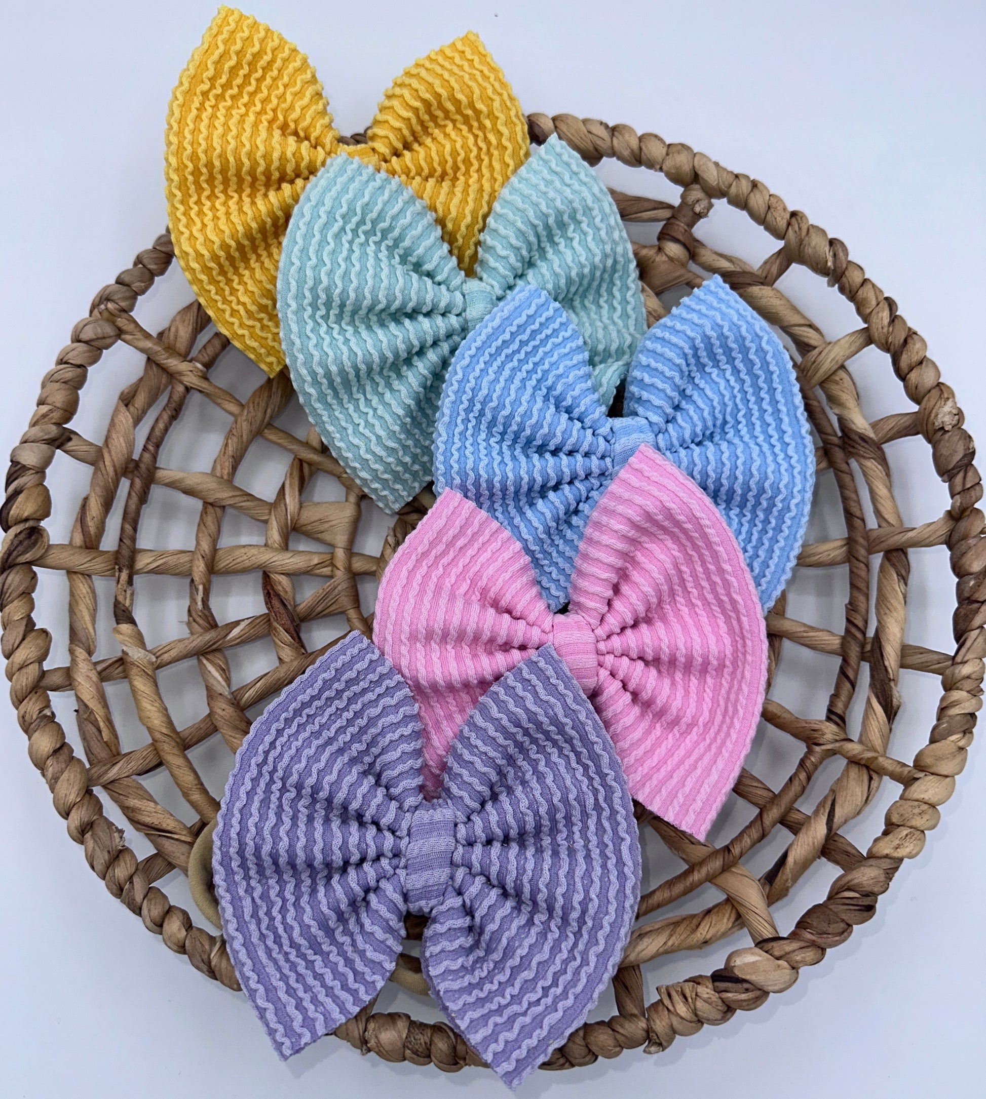 Head Wraps, Nylon and Big Clips are 5 inch bows.