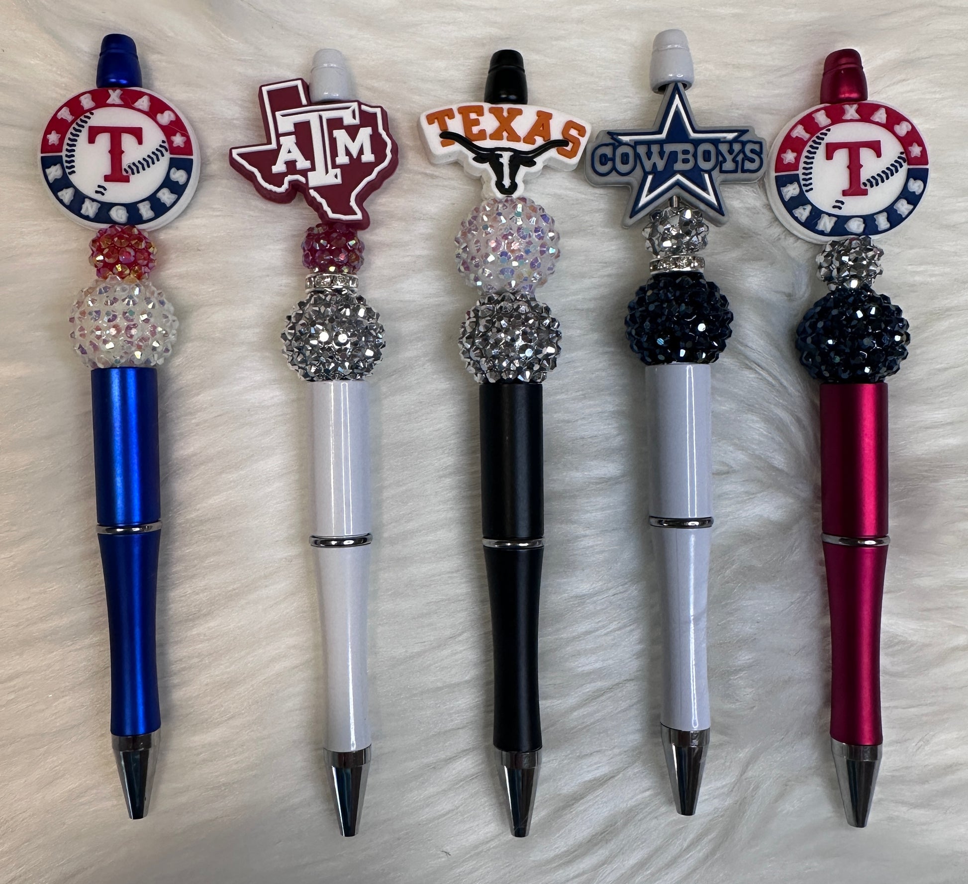 Beaded black ink plastic twist pen. Each pen comes with an additional ink refill.