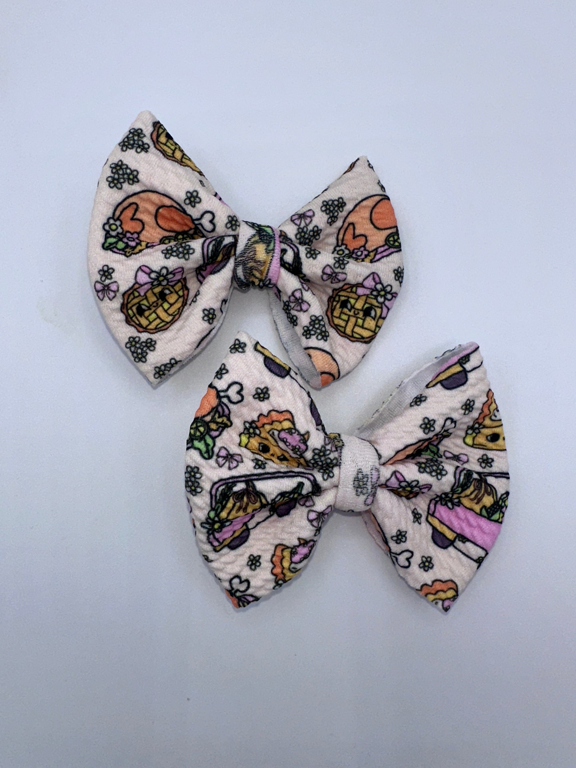 All bows may vary slightly due to the nature of being handmade. This goes for fabric, fabric pattern placement and color.
