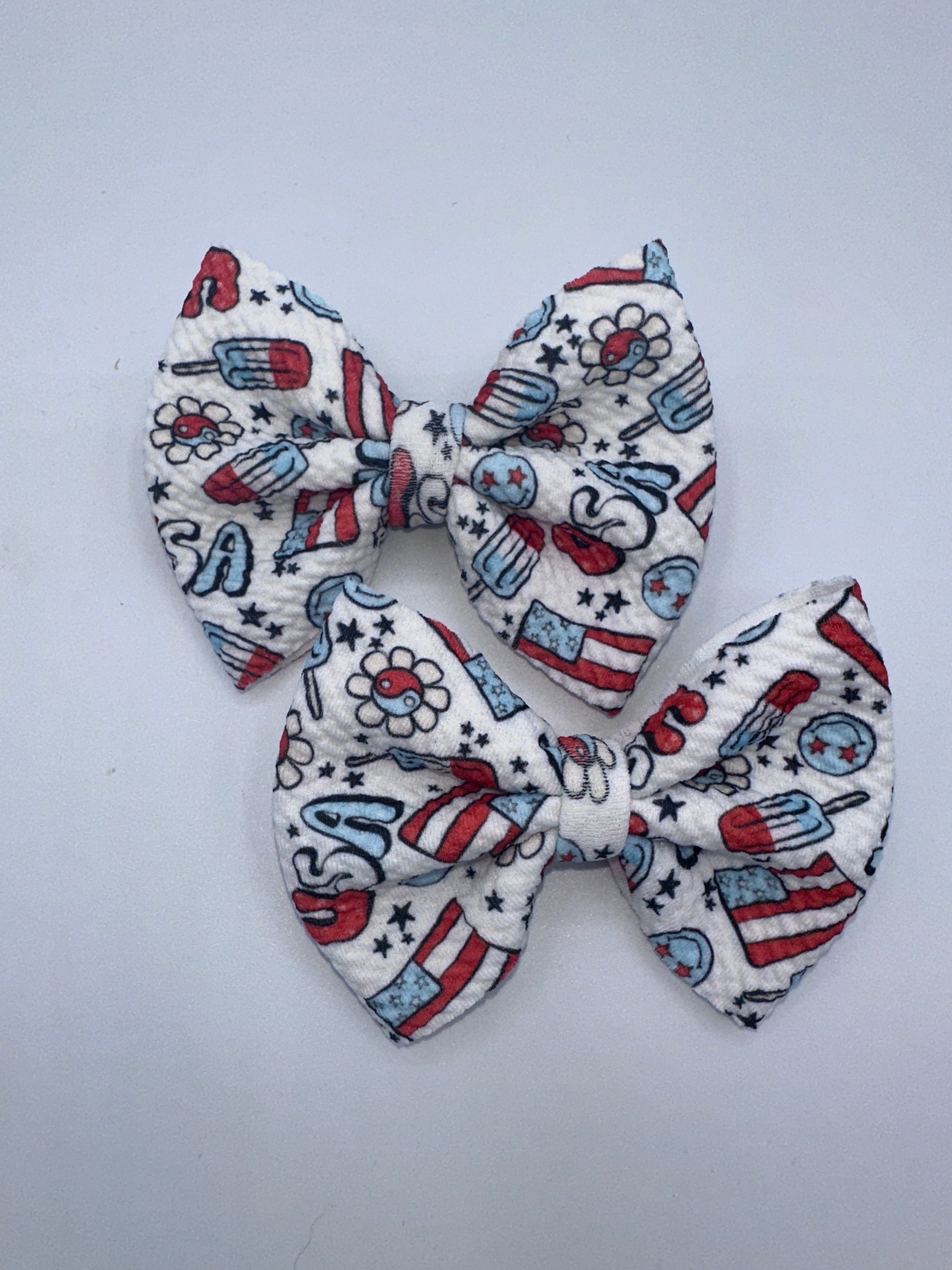 All bows may vary slightly due to the nature of being handmade. This goes for fabric, fabric pattern placement and color.